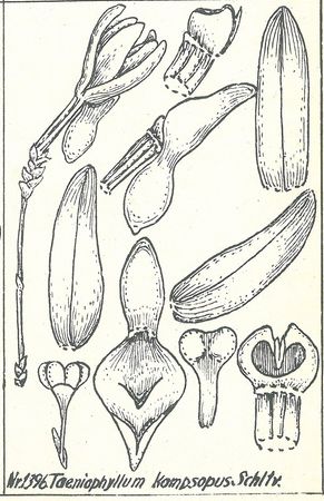 Taeniophyllum kompsopus Schltr. 1905 SUBGENUS Taeniophyllum SECTION Rhynchanthera Schlechter