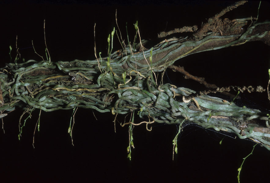 Found in Java in montane forests on small branches of Cupressus sinensis at elevations of 800 meters as a small sized, warm growing epiphyte or occasional lithophyte with dark green, very flattened roots without leaves that blooms in the early summer on a slightly zigzag, .24 to .48" [6 to 1.2 cm] long, laxly successively single, few flowered inflorescence.