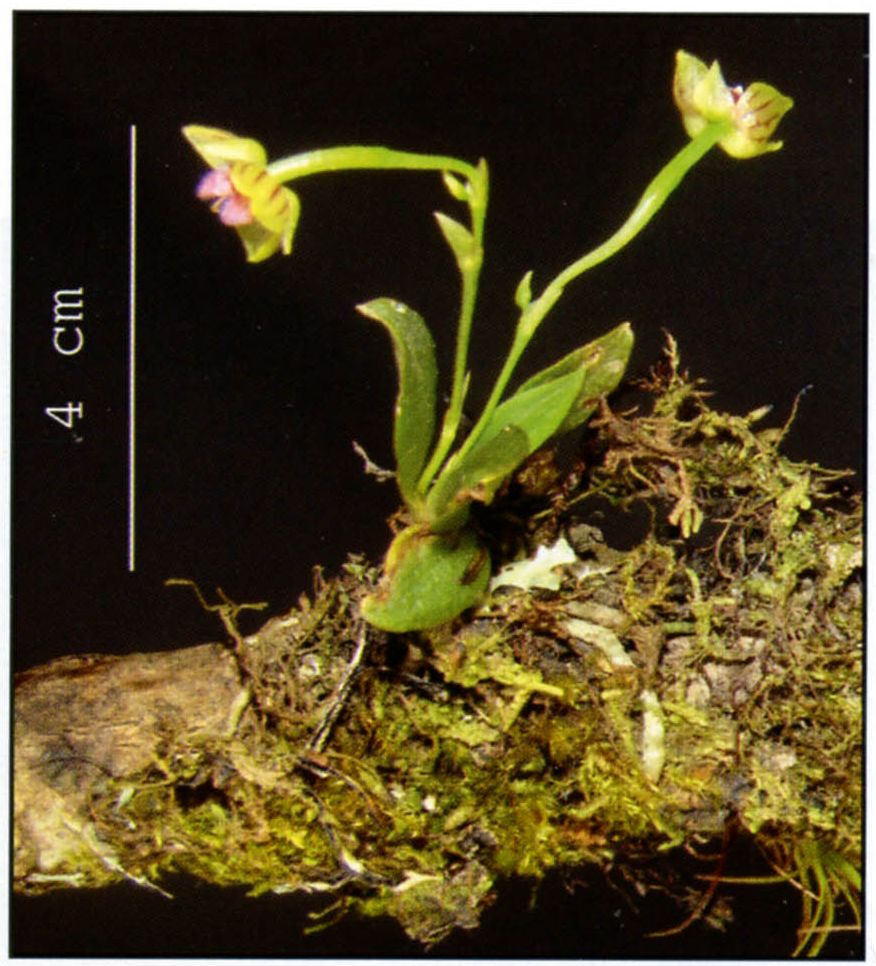 Found in Cundinamarca department of Colombia on small branches at elevations around 2400 meters as a mini-miniature sized, cold growing epiphyte with an abbreviated pseudobulb enveloped basally by a few fleshy basal sheaths and a few apical oblong-elliptic, acute leaves that blooms on a terminal, few flowered, terete inflorescence with concave, acute bracts and