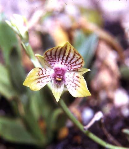 Found in northern Colombia, Ecuador and Venezuela as a miniature sized, cool to cold growing epiphyte. This species dies back after blooming in the summer and takes a rest until the next growth season, so do not throw out until you are sure it is dead.