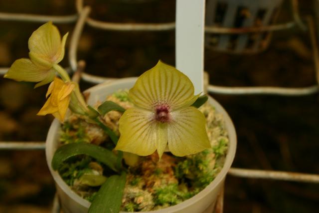 Found in Ecuador at elevations 1850 to to 2500 meters as a miniature sized, cold to cool growing epiphyte with a short stem carrying distichous, basally imbricating, narrowly elliptic, conduplicate below to the attenuate base leaf that blooms in the mid winter through summer on an axillary, single flowered, 2" [5 cm] long, fractiflex apically inflorescence that is narrowly two winged in cross section and has loose, acuminate floral bracts.