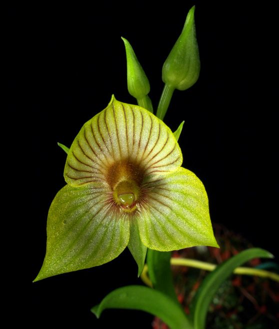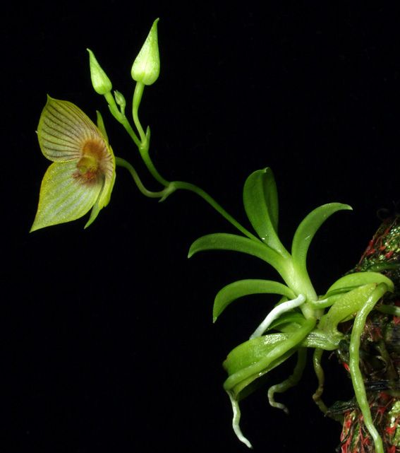 Found in Chiriqui province of Panama at elevations around 1500 meters as a miniature sized, cool growing epiphyte with a short stem completely enveloped by leaf-bearing sheaths and carrying several, narrowly elliptic, acute, conduplicate base leaves that blooms in the fall on an erect, several flowered inflorescence.