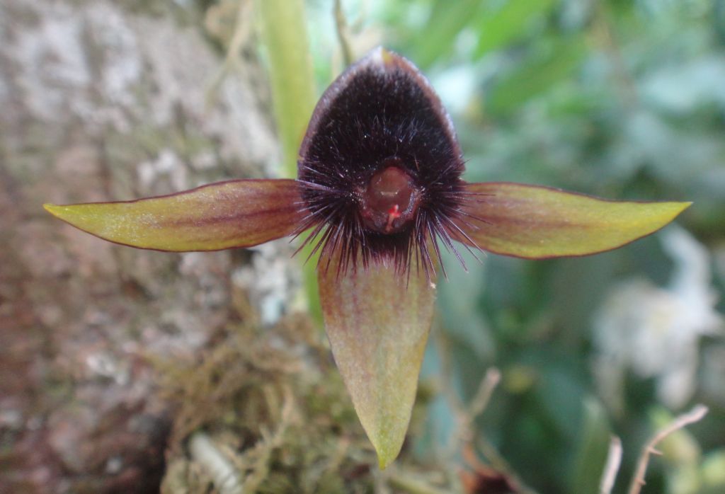 Found in Colombia at elevations around 2750 meters as a miniature sized, cold growing epiphyte that blooms in the summer fall and winter .