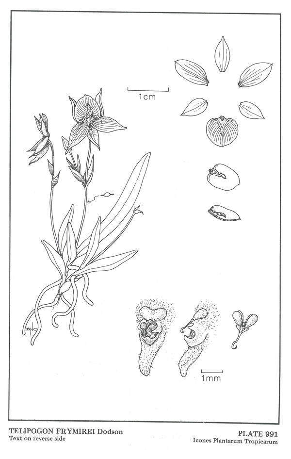References W3 Tropicos, Kew Monocot list , IPNI ; *Icones Plantarum Tropicarum Plate 991 Dodson 1984 drawing fide; Harvard Papers in Botany Vol 3 # 1 57 Schedulae Orchidum I Garay 1998 as Dipterostele frymerei; Native Ecuadorian Orchids Vol 3 Dodson 2002 pg 437 photo fide; Native Ecuadorian Orchids Vol 5 Dodson 2004 photo not!!! see Telipogon sp Ecuador #11 on IOSPE
