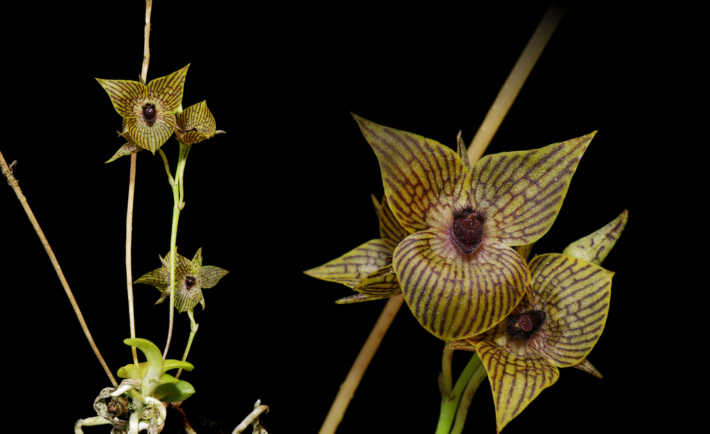 Found in Costa Rica at elevations around 2850 to 3050 meters as a miniature sized, cold growing, caulescent epiphyte with an erect, elongate stem enveloped by imbricate leaf sheaths carrying alternate, distichous, net-like venation, obovate, obtuse, narrowing below into the base leaves that blooms in the summer on an erect, terminal, terete, sometimes branched, to [45 cm] long, successively to 15 flowered inflorescence with triangular floral bracts and carrying non-resupinate flowers.