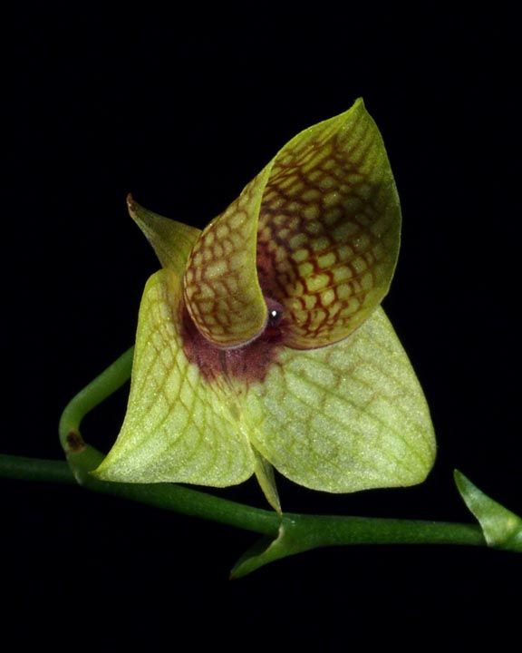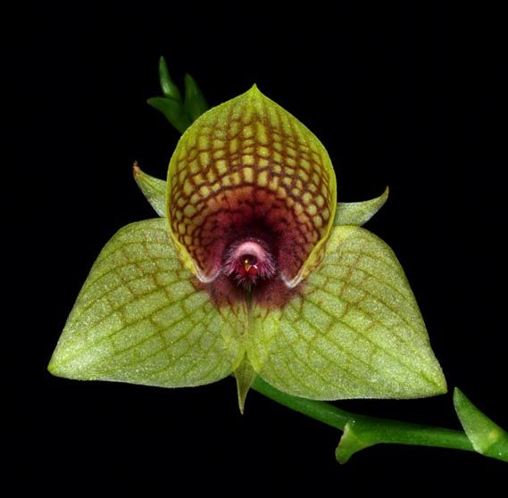 Found only in southern Ecuador at elevations around 1500 to 3000 meters on roadbanks and steep slopes as a mini-miniature sized, warm to cold growing terrestrial with a short stem enveloped completely by leaf bearing sheaths and carrying a few elliptic, obtuse, basally clasping leaves and blooms in the summer on an erect, elongate, 4" [10 cm] long, terminal, terete, successively few flowered inflorescence.