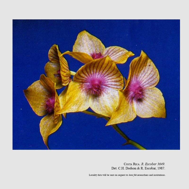 References W3 Tropicos, Kew Monocot list , IPNI ; Orquideologia Vol 17 #2 1987 photo fide; Manual de Plantas de Costa Rica Vol 3 Hammel, Grayum, Herrera and Zamora 2003; AOS Bulletin Vol 79 #10 2010 photo fide;
