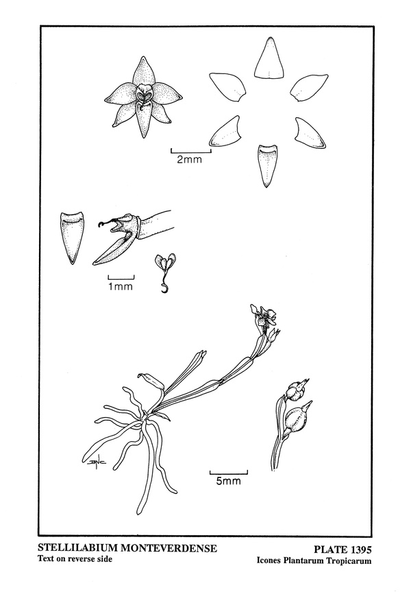 References W3 Tropicos, Kew Monocot list , IPNI ; Icones Plantarum Tropicarum Plate 1395 Atwood 1989 as Stellilabium monteverdense drawing fide; Rudolf Schlechter Die Orchideen Band 1B lieferung 30 1841 - 1904 Brieger 1994 as Stellilabium monteverdense; Rudolf Schlechter Die Orchideen Band 1C lieferung 44-45 pg 2763 - 2898 Brieger 2001 as Stellilabium monteverdense; Manual de Plantas de Costa Rica Vol 3 Hammel, Grayum, Herrera and Zamora 2003 as Stellilabium monteverdense;