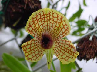 Found in Ecuador and Peru in upper montane cloud forests at elevations of 1800 to 3000 meters as a miniature sized, cool to cold growing epiphyte that takes a rest until the next growth season so do not throw away until you are sure that it is dead, with a short stem that branches basally enveloped completely by distichous, basally imbricating, elliptic-oblong, conduplicate below into the base leaves and blooms on a compressed, 1 1/2" [3.75 cm] long, single flowered inflorescence with a large acuminate sheath occuring in the spring through summer. This species is highly variable in flower shape and color, amount of veins and reticulation and if the color is bright or not, but the callus and the column do not vary between clones.