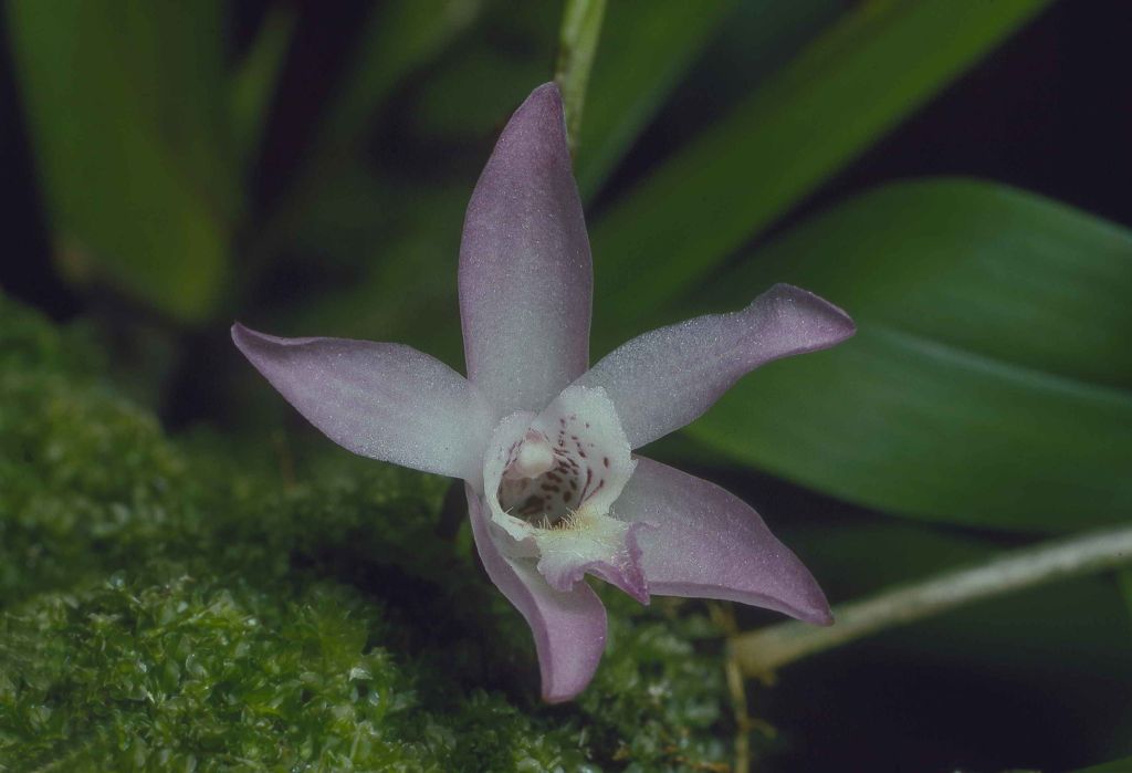 Found in Mexico, Belize, Guatemala, Honduras, Costa Rica, Colombia and Ecuador in lowland to open montane forests at elevations of 100 to 600 meters as a small sized, hot growing epiphyte with scattered, adpressed to the rhizome, ovoid pseudobulbs enveloped completely by thick papery, persistent sheaths becoming fibrous with age and carrying apically, a single, slender, narrowly ellipitc, acute, plicate, gradually narrowing below into the conduplicate, elongate, terete, petiolate base leaf that blooms in the fall on 2, basal, to 2" [5 cm] long, single flowered inflorescence enveloped completely by imbricate, acute bracts and has resupinate flowers.