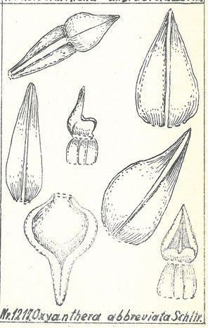 References W3 Tropicos, Kew Monocot list , IPNI ; Orchidaceae of German New Guinea Schlechter 1913 as Oxyanthera abbreviata drawing fide;