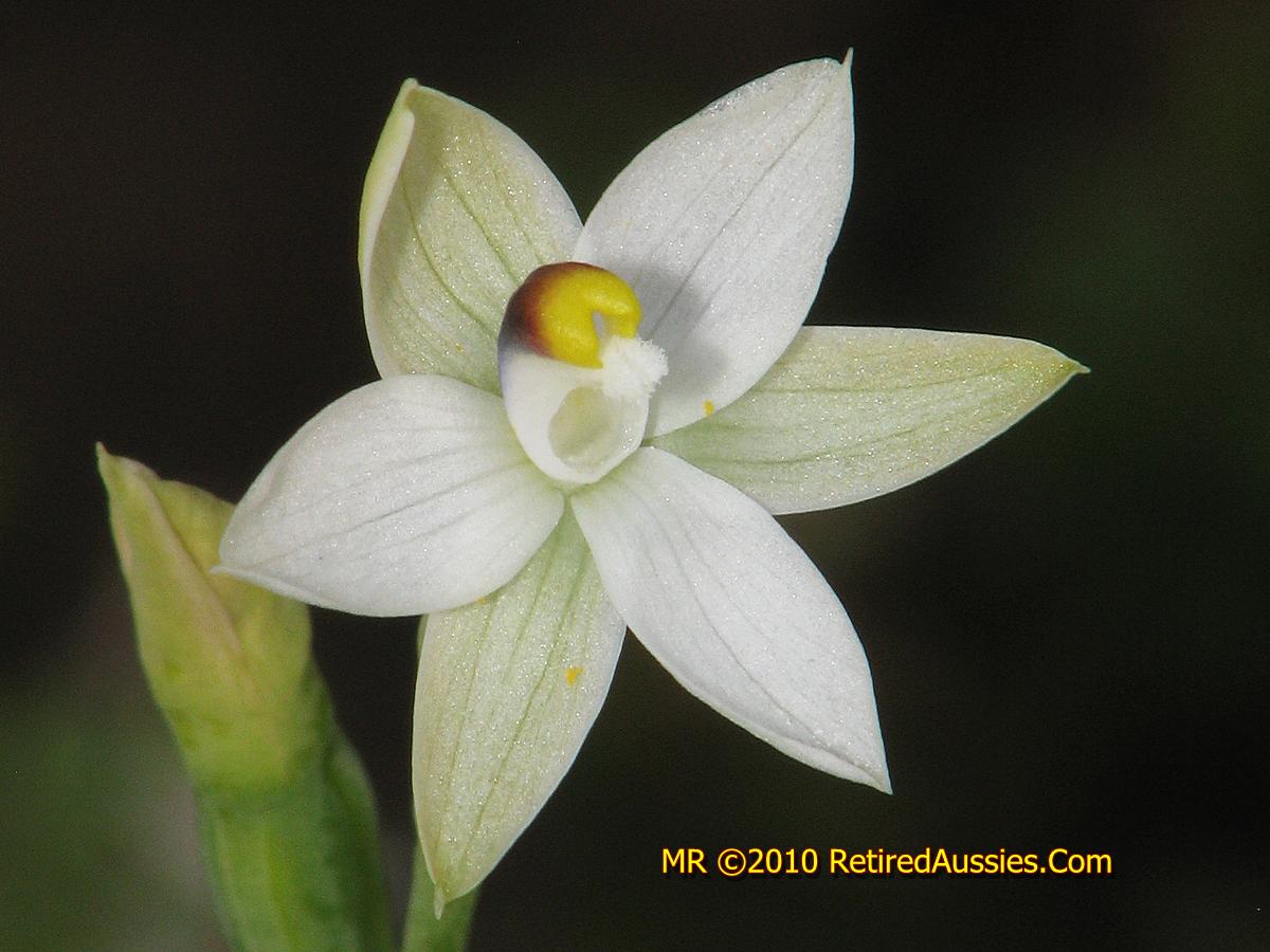 Thelymitra albiflora Jeanes 2004 Photo by © Colin & Misha Rowan and their Retired Aussies Orchid Photo Website