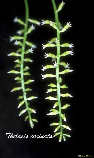 Synonyms Eria carinata [Bl.] Rchb.f 1868; Euproboscis griffithii Rchb. f. 1857; Oxyanthera carinata (Blume) Schltr. 1900; Oxyanthera elata (Hook.f.) Hook.f. 1892; Oxyanthera papuana Schltr. 1905; Phreatia carinata (Blume) Miq. 1859; Thelasis carinata f. semipelorica J.J.Sm. 1929; Thelasis elata Hook. f. 1890; Thelasis papuana (Schltr.) W.Kittr. 1984 publ. 1985