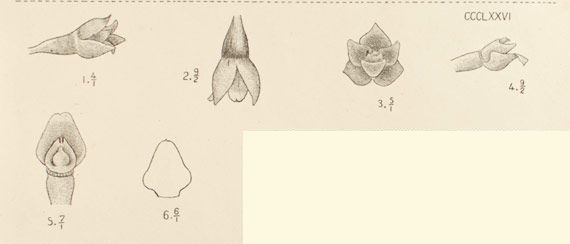 Found only in western Java as a small sized, hot to warm growing epiphyte with a hidden pseudobulb enveloped by 2 basal clasping leaves and carrying an apical, slightly notched margined leaves that blooms on an axillary, to 12.4" [31 cm] long, elongating, successively many flowered inflorescence with very small, fairly wide open flowers
