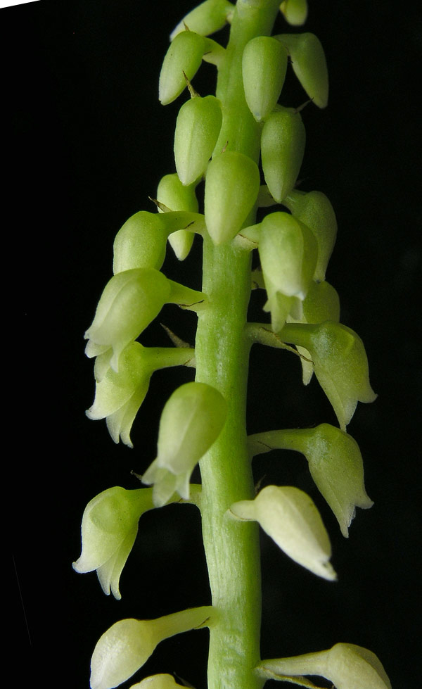 Found in penninsular Malaysia and Borneo in lower montane forests at elevations around 200 to 3000 meters as a small sized, hot growing orchid with ovoid, taller than wide pseudobulbs carrying 2, a single short, and a single long, apical, erect, narrowly oblong, broadly pointed, gradually narrowing to the base leaves that blooms in the late summer on a basal, erect, to 8" [20 cm] long, many flowered inflorescence with many flowers open at any one time.