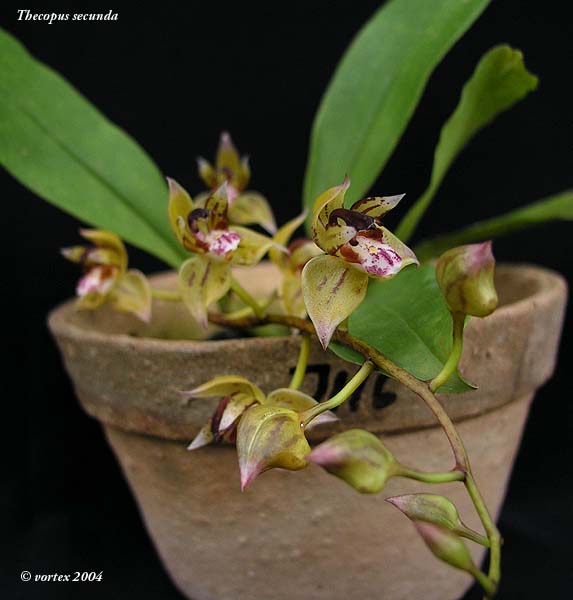 References W3 Tropicos, Kew Monocot list , IPNI ; Flora of Malaya Vol 1 Holttum 1957 as Thecostele secunda; Encyclopedia of Cultivated Orchids Hawkes 1965; *Opera Botanica #72 Orchid Genera in Thailand XI Cymbidiaeae Seidenfaden 1983 drawing fide; Rudolf Schlechter Die Orchideen Band 1B lieferung 24 1457 - 1520 Brieger 1991; The Orchids of Penninsular Malaysia and Singapore Seidenfaden & Wood 1992 drawing fide; A Checklist of the Orchids of Borneo Wood & Cribb 1994; Orchids of Sarawak Beaman, Wood & Beaman etal 2001; photo ? not; A to Z of South East Asian Orchid Species Vol 1 O'Byrne 2001 photo fide; Malesian Orchid Journal Vol 3 2009 photo fide; Wild Orchids of Penninsular Malaysia Ong, O'Byrne, Yong & Saw 2011 photo fide; Taiwania 61(4):319-354 November 2016, New Species of Orchids (Orchidaceae) in the Flora of Vietnam Averyanov, Nong, Nguyen and Truong 2016 Drawing/photo fide;