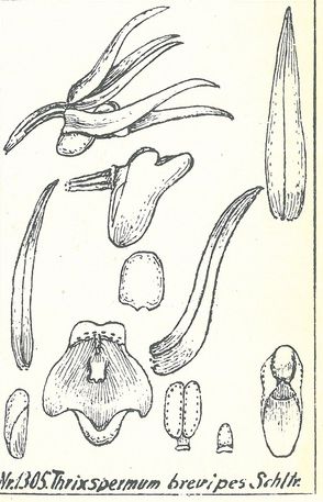 Thrixspermum brevipes Schltr. 1913 SECTION Thrixspermum Drawing by Ames and The Swiss Orchid Foundation at the Jany Renz Herbaria Website