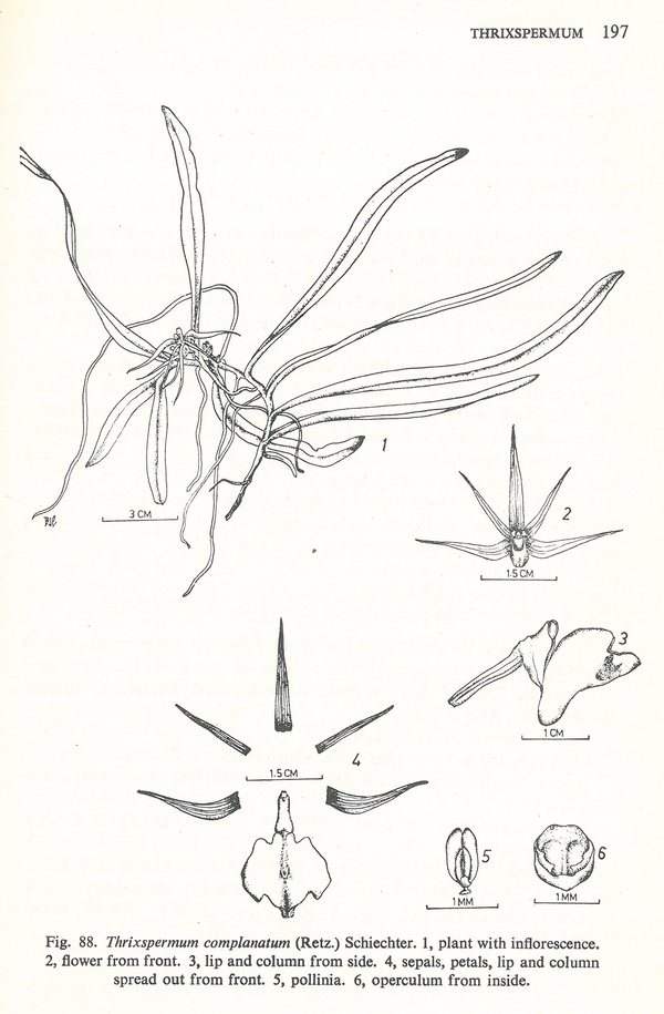 Thrixspermum complanatum (J.Koenig) Schltr. 1911 Drawing by Dassanayake & F.R.Fosberg and The Swiss Orchid Foundation at the Jany Renz Herbaria Website