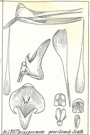 Thrixspermum gracilicaule Schltr. 1907 SECTION Thrixspermum Drawing by © Seidenfaden and The Swiss Orchid Foundation at the Jany Renz Herbaria Website