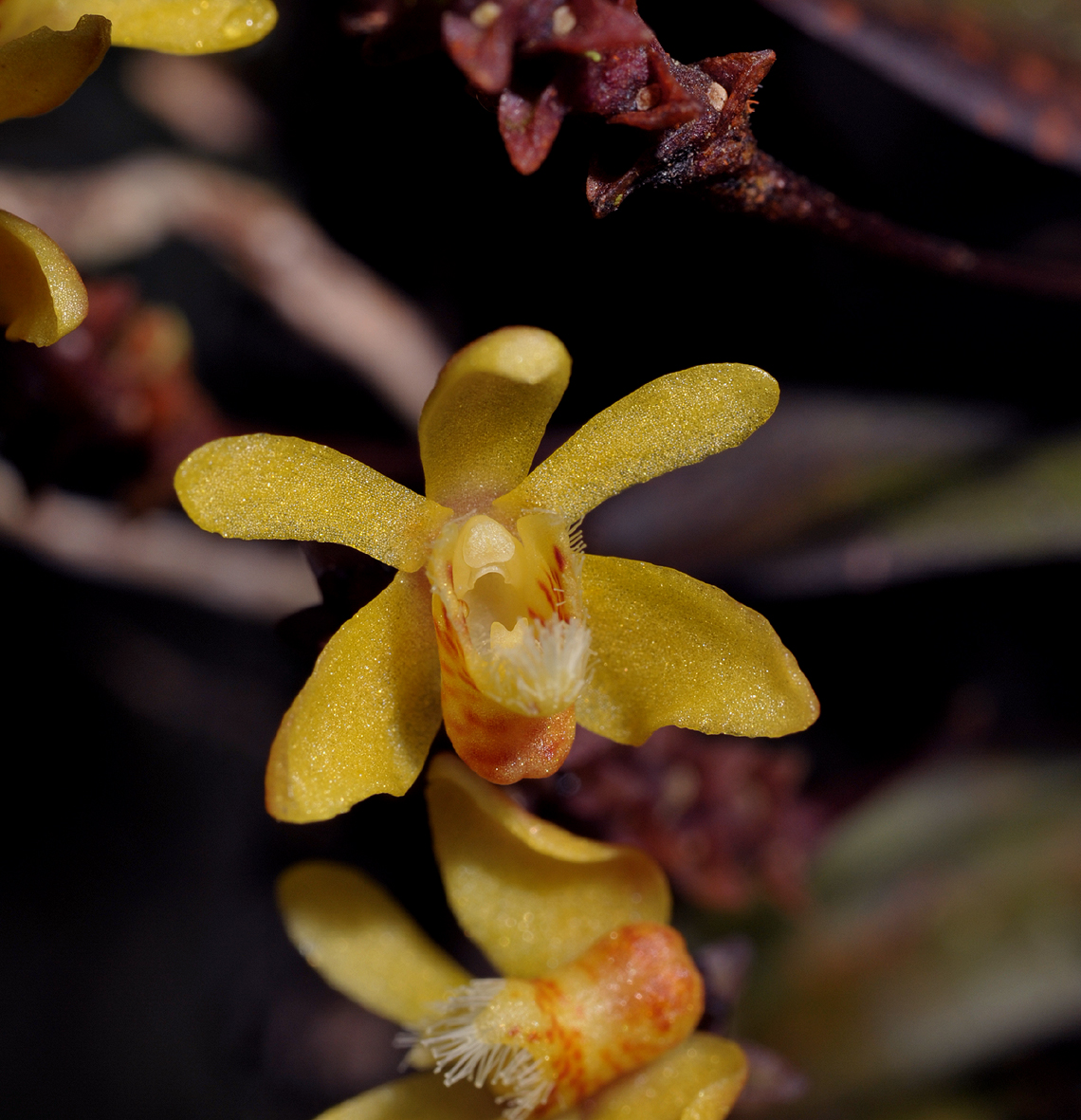 Synonyms Acoridium corrugatum (Ridl.) Rolfe 1904; Dendrochilum fimbriatum Ames 1920; *Platyclinis corrugata Ridl. 1894