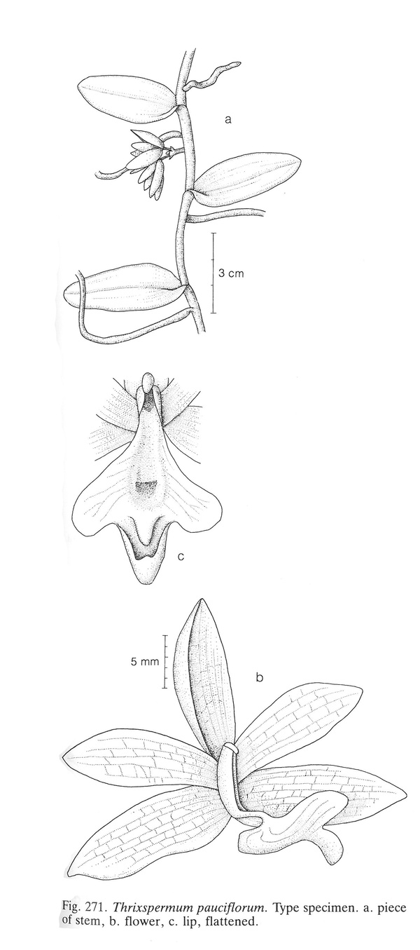 Thrixspermum pauciflorum (Hook.f.) Kuntze 1891 SECTION Thrixspermum Drawing by © Seidenfaden and The Swiss Orchid Foundation at the JanyRenz Herbaria Website