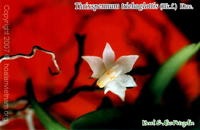 Synonyms Dendrocolla alba Ridl. 1905; Dendrocolla trichoglottis (Hook.f.) Ridl. 1896; *Sarcochilus trichoglottis Hook. f. 1890; Thrixspermum album (Ridl.) Schltr. 1911