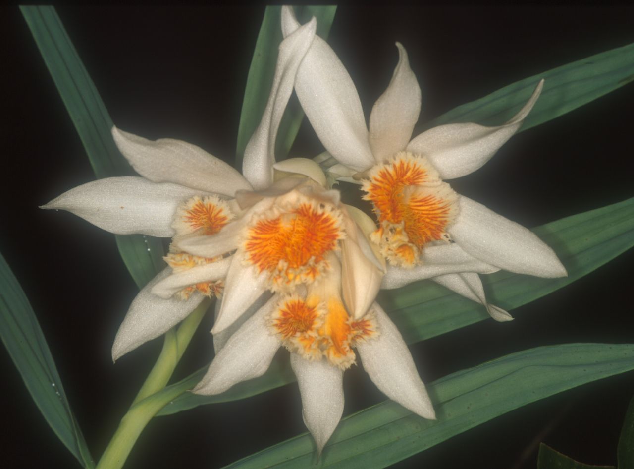 This is the type species for the genus occuring as a large sized, cool to warm growing, deciduous-leafed terrestrial or lithophyte found in the western Himalayas, China, Assam India, eastern Himalayas, Nepal, Bhutan, Sikkim, Andaman Islands, Myanmar, Thailand, Malaysia and Vietnam on the ground on rocks and in tree forks at elevations of 1000 to 2300 meters with elongate, tufted, erect stems carrying 2 ranked, elliptic-lanceolate, sessile, tapering towards the apex, thinly fleshy, glaucous leaves that blooms in the mid summer in the northern hemispere on a terminal, to 12" [to 30 cm] long, loosely 5 to 10 flowered inflorescence with ovate-oblong floral bracts and hanging very fragrant orange scented flowers that often do not open fully.