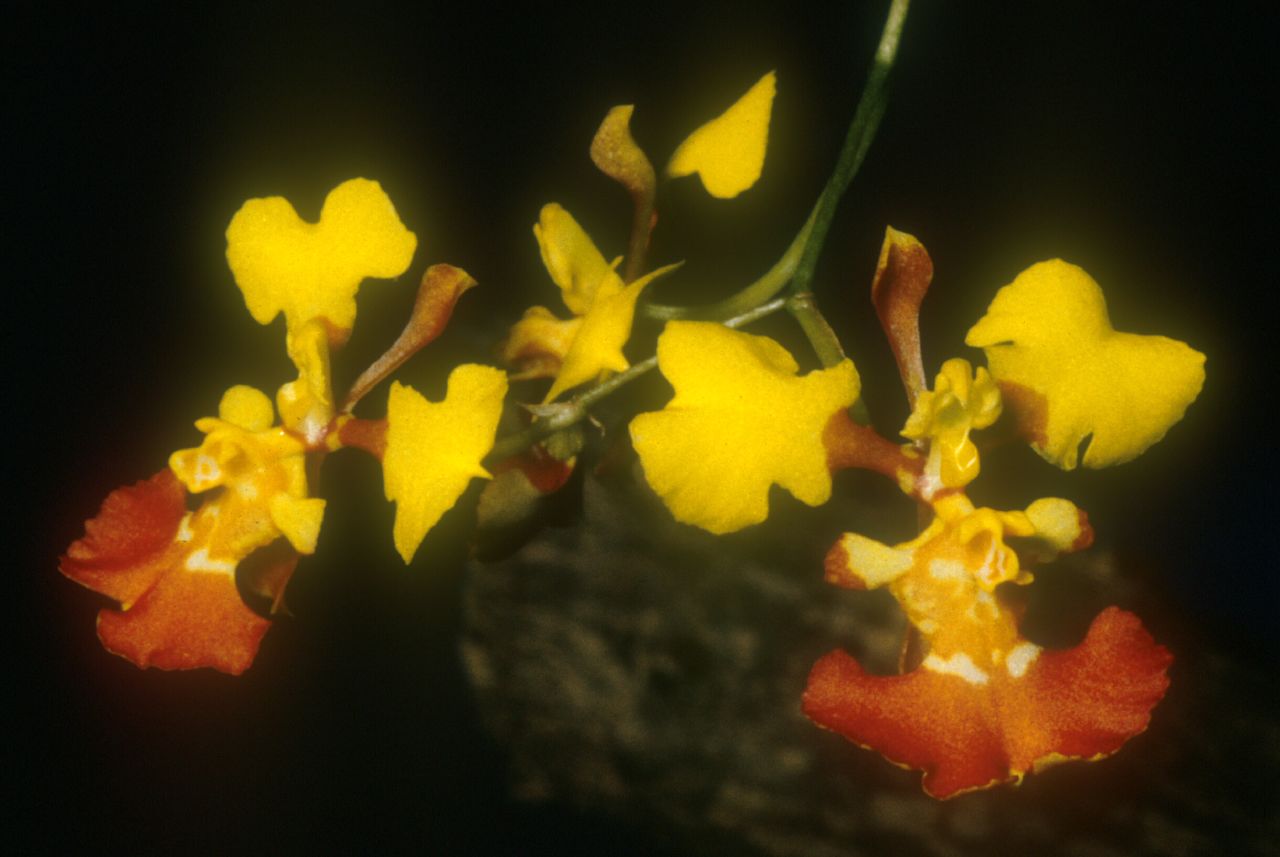 Found in the Bahamas, Hispanola and Cuba in dry and humid subtropical forests from sealevel to 700 meters as a miniature, hot to warm growing, fan epiphyte with 5 to 6, thick, conduplicate, sickle-shaped, acute, bronze-green leaves that blooms in the late winter on an axillary, to 16" [40 cm] long, many [10 to 15] flowered, racemose to shortly paniculate inflorescence with an occasional, few short branches towards the bottom of the raceme all arising through the leaf axils and carrying the to 20 flowers in an apical cluster.