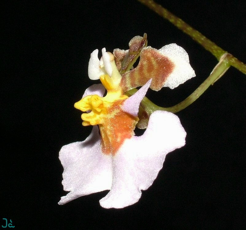 Found in Cuba, Haiti, Dominican Republic, Puerto Rico and the Leeward Islands as an miniature sized,equitant, creeping, epiphyt found in dry scrub, woods or on fence posts from sealevel to 700 meters with very short, erect stems enveloped by 4 to 10, imbricate, disitichous, fleshy to coriaceous, bilaterally flattened, channeled on the upper side, linear to elliptic-lanceolate, falcate, acute to acuminate, serrulate leaves that blooms on an erect, simple or branched, to 32" [to 80 cm] long, laxly few flowered inflorescence that has lanceolate, acute bracts and has new branches and flowers appearing after the first blooms all occuring in the spring, summer and fall with 1", long-lasting flowers. I have the best luck mounting these miniature beauties to small branches, giving them medium light and plenty of air circulation.