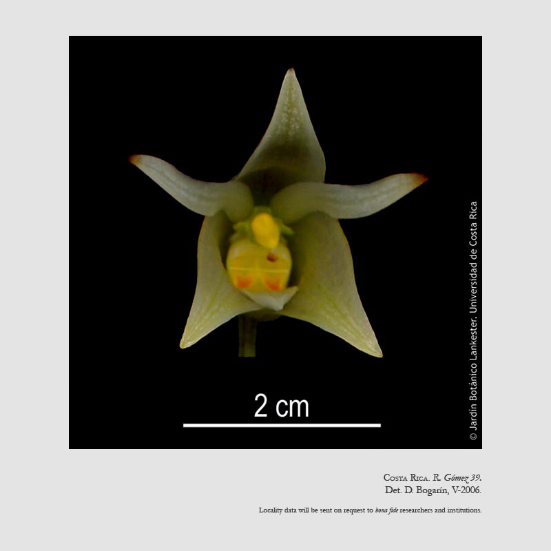 References W3 Tropicos, Kew Monocot list , IPNI ; Lankester's Epidendra Website CR ; *Orquideología 5: 8.1970; Icones Planetarum Tropicarum Plate 1187 Hamer 1984 drawing fide; Rudolf Schlechter Die Orchideen Band 1C lieferung 37/38 pg 2309 - 2436 Brieger 1999 photo fide; Manual de Plantas de Costa Rica Vol 3 Hammel, Grayum, Herrera and Zamora 2003;