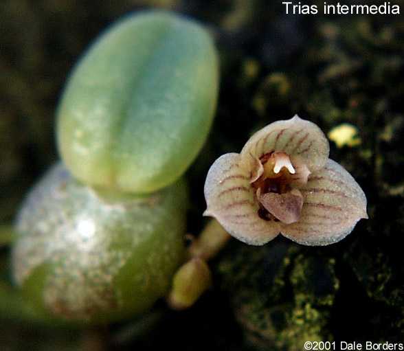 References W3 Tropicos, Kew Monocot list , IPNI ; The Orchids of Thailand Seidenfaden & Smitinand 1961 as Trias intermedia drawing fide; The Orchids of Thailand Seidenfaden & Smitinand 1965 corrections as Trias intermendia photo fide; Botanisk Tidsskrift Bind 71 1-30 Contributions to the Orchid Flora of Thailand VII Seidenfaden 1976 as Trias intermedia drawing fide; Die Orchideen lieferung 13 753 - 816 Bulbophyllinae 1983 as Trias intermedia; Orchids Travel By Air A Pictoral Safari Mulder, Mulder-Roelfsema and Schuiteman 1990 photo fide; A field Guide to the Wild Orchids of Thailand Vaddhanaphuti 2001 as Trias intermedia photo fide; Bulbophyllum and Their Allies Seigerist 2001 as Trias intermedia; A field Guide to the Wild Orchids of Thailand Vaddhanaphuti 2005 as Trias intermedia photo good; *Phytotaxa 166 (2): 101–113 J.J.Verm., Schuit. & de Vogel 2014