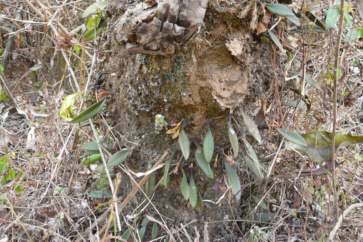 Found in southwestern India in hot lowlamds at elevations around 100 metres as a mini-miniature sized, hot growing terrestrial with .8” [2 cm] between each globose pseudobulb carrying a single, apical lanceolate-elliptic, acute leaf that blooms in the later winter and early spring on a basal, short to .4” [1 cm] long, single flowered inflorescence