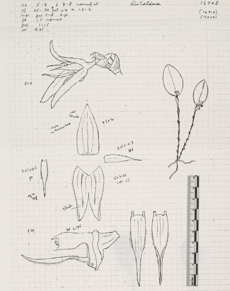 Related to T orbicularis but differs in the narrowly ovate, apically narrowly acuminate petals and the narrowly ovate lip with the margins of the long-acuminate apex revolute.