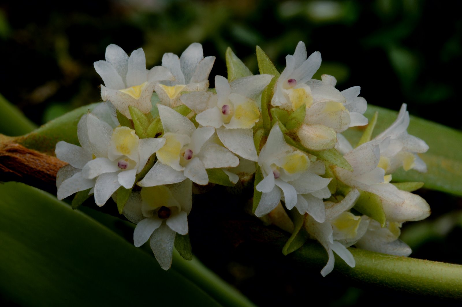 Found in Borneo, Java and Sumatra in montane forests at elevations of 1000 to 1700 meters as a large to giant sized, cool growing epiphyte with a pendulous stem bearing, pale green, narrowly lanceolate, acuminate, glabrous [margins may be slightly hairy] leaves that blooms in the late spring on a short, densely brown-hairy, densely to 15 flowered inflorescence with persistent pale green bracts and carrying short-lived flowers.