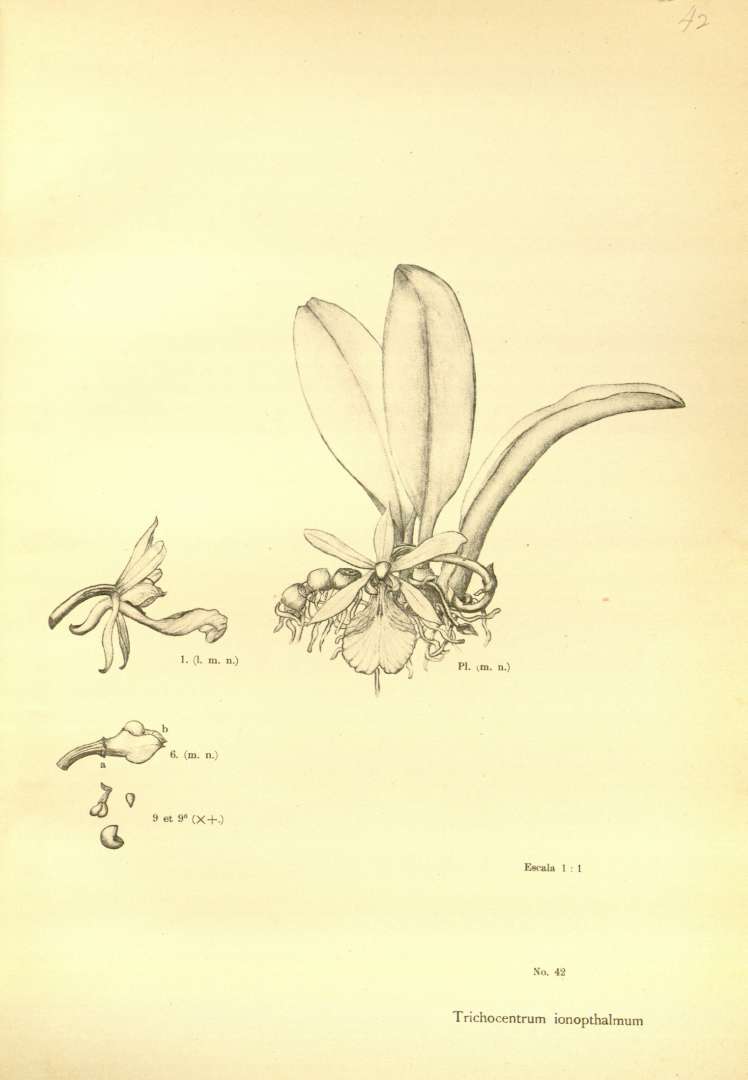 Trichocentrum ionopthalmum Rchb.f. 1876 SECTION Trichocentrum Drawing by © Hoehne and The Plant Illustration Website