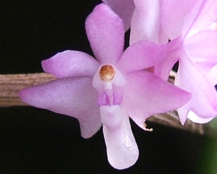 Found in the Philippines coastal forests at elevations up to 1000 meters as a giant sized, hot to warm growing, monopodial epiphyte with a pendulous, elongate stem enveloped by imbricate leaf sheaths and carrying leathery, distinctly purple in bright light leaves that blooms in the fall, winter and springon a short, 2 to 6 flowered infloresence arising opposite the leaves and holding the flowers close to the stem.