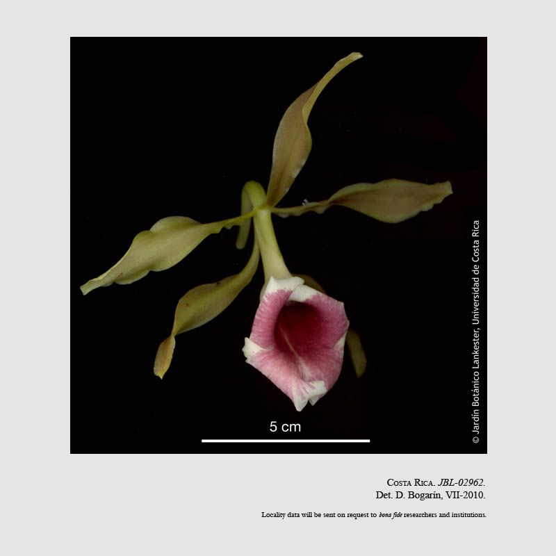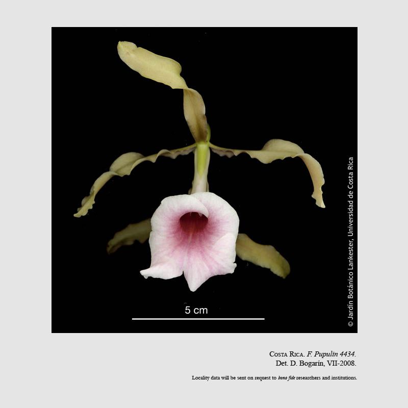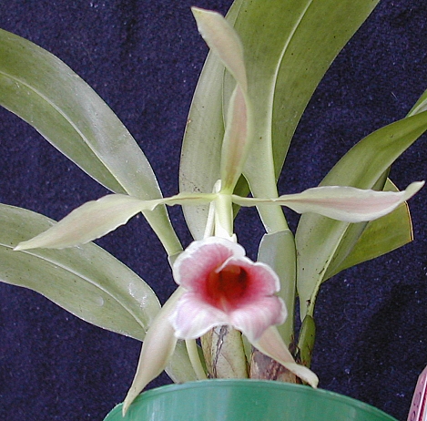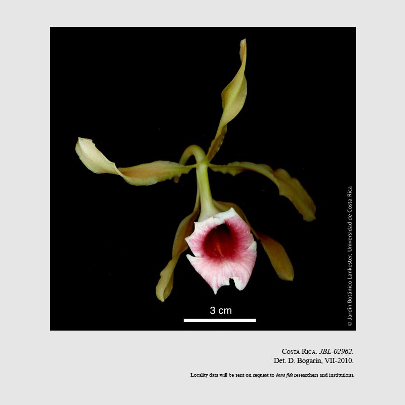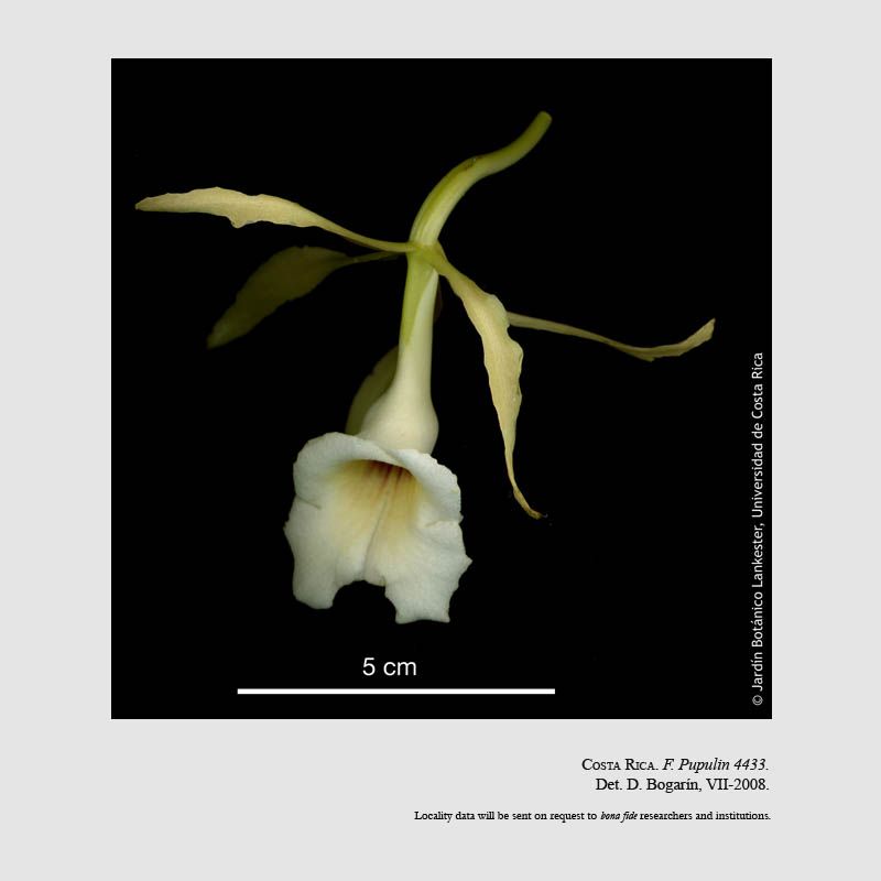 Found from Honduras, Nicaragua, Costa Rica, Panama and CLM Colombia in premontane and lower montane rain forests on shady tree trunks as a medium sized, hot to cool growing epiphyte at elevations of 800 to 1500 meters with clustered, linear, strongly compressed pseudobulbs enveloped below by a few non-foliaceous, sheaths and carrying a single, apical, lanceolate to elliptic-lanceolate, coriaceous, acute, gradually narrowing below into the conduplicate base leaf that blooms in the spring on a 3 to 4, basal, arching, to pendant, short to 2" [to 5 cm] , single flowered inflorescence arising on a mature pseudobulb with highly fragrant flowers.