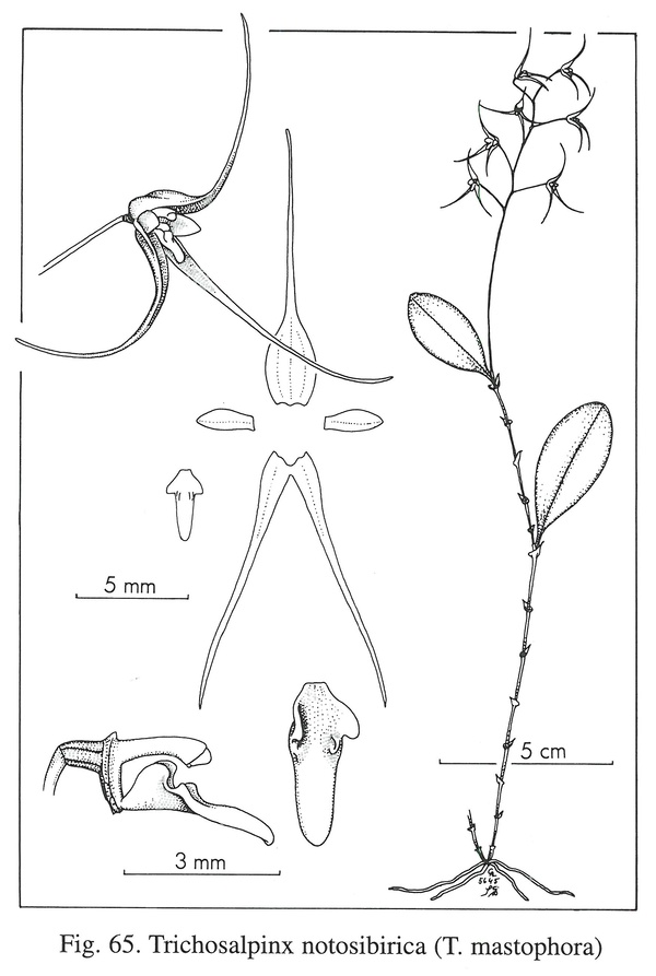 Synonyms Pleurothallis mastophora Luer & R.Vásquez 1981; *Pleurothallis notosibirica T.Hashim. 1978; Trichosalpinx mastophora (Luer & R.Vásquez) Luer 1983; Tubella notosibirica (T.Hashim.) Archila 2000