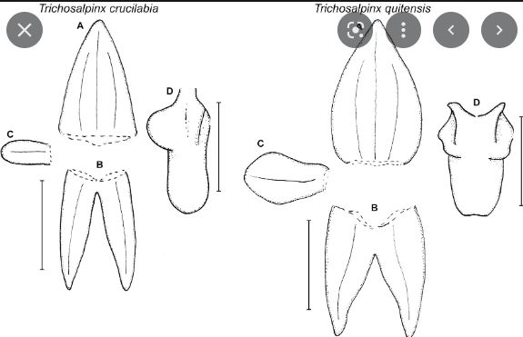 "It is similar to T. crucilabia and T. quitensis, from which it differs by long-connate lateral sepals, ligulate-spathulate petals with irregular apical margins, a prominent lip claw, and a ventral anther." Rykacz., Szlach. & Kolan 2018