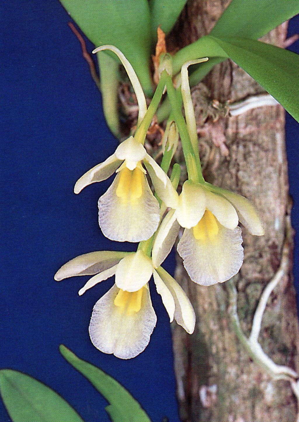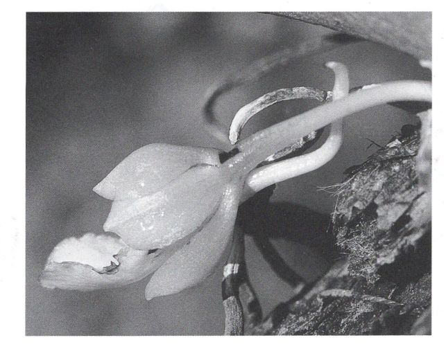 Found in Santander Colombia at elevations around 1900 meters as a mini-miniature sized, cool to cold growing epiphtye with small, linear-elliptic pseduobulbs enveloped by 3 papyraceous sheaths and carrying a single, fleshy, green, elliptic-ovate to oblong, obtuse to minutely retuse sesile leaf that blooms in the summer on a terete, to 1" [2.5 cm] long, single [rarely 2] flowered inflorescence with ovate acute floral bracts