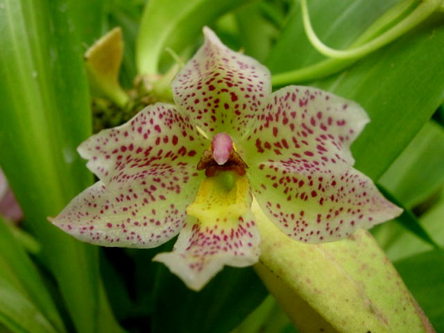 Synonyms Lophiaris maculata f. flavovirens (P.M.Br.) P.M.Br. 2000; Oncidium undulatum f. flavovirens P.M.Br. 1995; Orchis punctata Ruiz & Pav. ex Pupulin 1795; Trichocentrum maculatum Lindl. 1846; Trichocentrum maculatum f. flavovirens (P.M.Br.) P.M.Br. 2001; Trichocentrum speciosum Schlim ex Pupulin 1995; Trichocentrum verruciferum Schltr. 1920