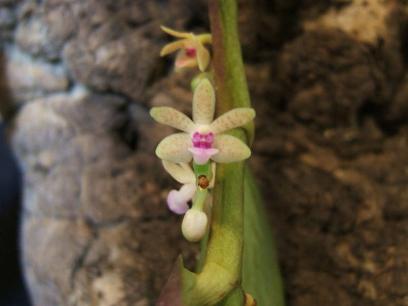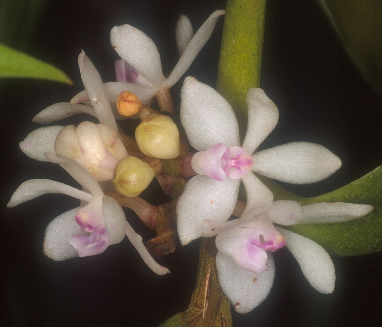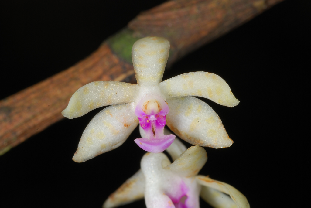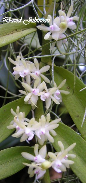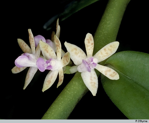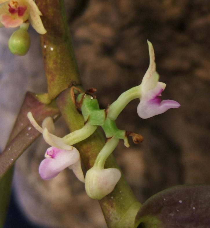 This species is from the Philippines and Taiwan in forests on tree trunks at low elevations, and was formerly known as Cleisostoma rosea Lindley. It is a small to medium sized, hot to warm growing epiphytic species with a pendant, slender, fractiflex, branching stem with 2 ranked, oblong-lanceolate, leathery leaves that blooms on an axillary, sessile, 2 flowered inflorescence with the long-lived, waxy flowers held on the stem occuring in the spring.