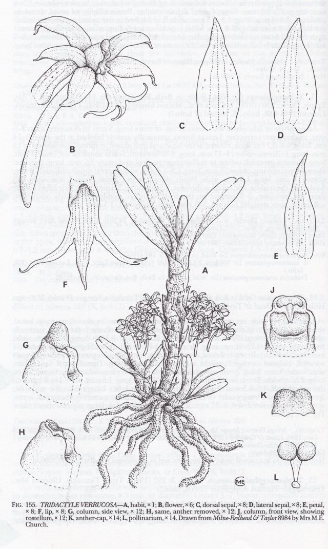 Tridactyle verrucosa P.J.Cribb 1985 Drawing by © M E Church/Cribb