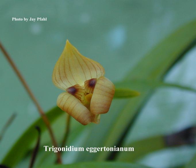 Synonyms Maxillaria brachyglossa A. Rich. & Galeotti 1845; Maxillaria egertoniana (Bateman ex Lindl.) Molinari 2015; Trigonidium brachyglossum (A. Rich. & Galeotti) Schltr. 1918; Trigonidium callistele Rchb.f. 1860; Trigonidium seemannii Rchb.f 1854; Trigonidium spatulatum Linden & Rchb.f. 1854