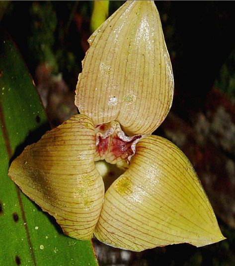 Found in Guatemala, Nicaragua, Costa Rica, Colombia and Ecuador in wet lowland forests at elevations of 50 to 1000 meters as a small sized, hot growing epiphyte with elliptic, slightly flattened, slightly ridged pseudobulbs carrying 2, apical, narrowly linear, acute, becoming conduplicate below into the clasping base leaves that blooms in the summer through fall on numerous, basal, 8" [20 cm] long, single flowered inflorescence