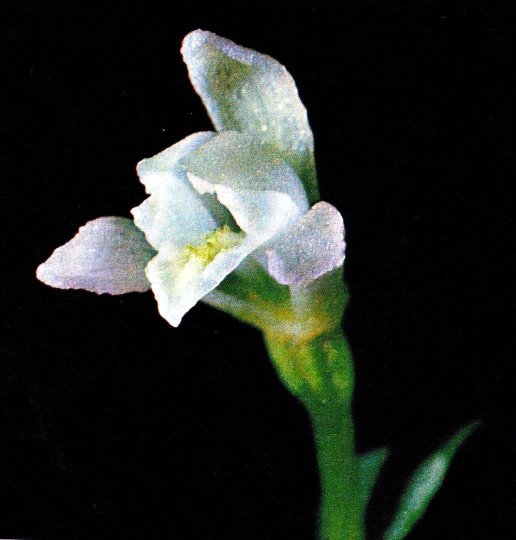 Found in Florida, Dominican Republic, Puerto Rico, Trinidad & Tobago, Guyana, French Guiana, Surinam and Brazil as a mini-miniature sized, hot to cool growing terrestrial orchid with an erect succulent, terete, green, slightly fractiflex in youth stem clasped by alternating leaf sheaths and arising from an ovoid tuber and carrying 2 to 4, green to yellow green, broadly ovate to reniform, marginally smooth leaves that blooms in the summer through early fall on an erect, terminal, short, single flowered inflorescnece