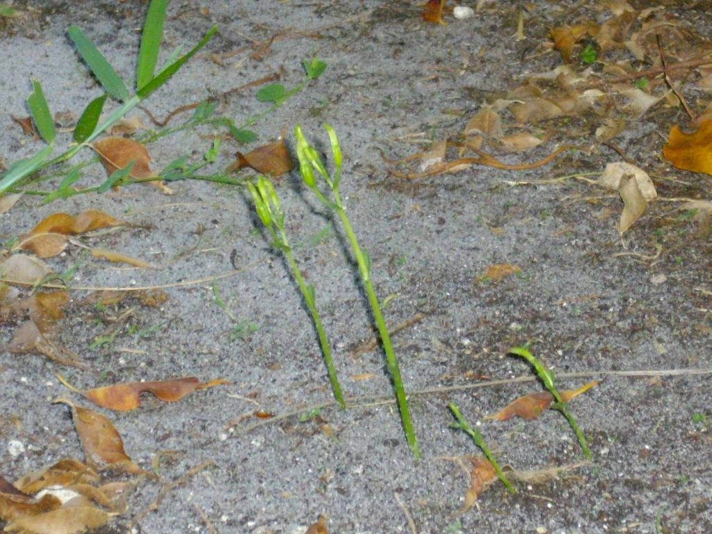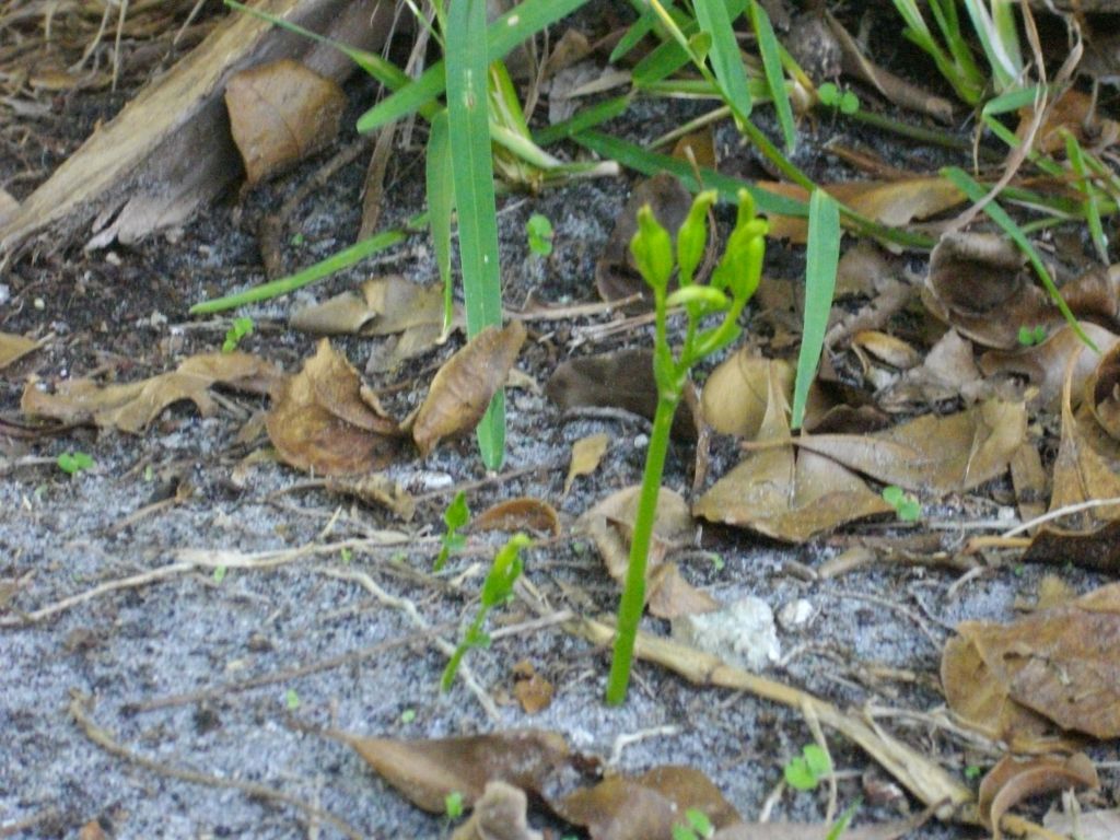 Found in Florida, Bahamas, Haiti, Dominican Republic, Cuba, Jamaica, Cayman Islands, Mexico, Guatemala, Honduras, El Salvador, Costa Rica, Panama, Venezuela, Colombia and Ecuador at low elevations as a mini-miniature to small sized, hot to warm growing terrestrial with a subterranean corm giving rise to an erect, green suffused with brown, succulent, terete stem carrying 3 to 10, green tinged with brown, margins smooth, ovate, ascending leaves that blooms in the late spring and early summer on an erect, terminal, corymbose, to 8" [20 cm] long, 3 to 10 flowered inflorescence