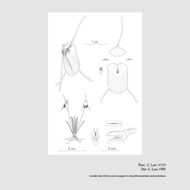 References W3 Tropicos, Kew Monocot list , IPNI ; *Icones Pleurothallidinarum Vol XI 1994 drawing fide; Rudolf Schlechter Die Orchideen Band 1C lieferung 42 - 43 pg 2626 - 2762 Brieger 2001; Orchids Masdevallia with its segregates including Dracula Zelenko 2014 photo fide;