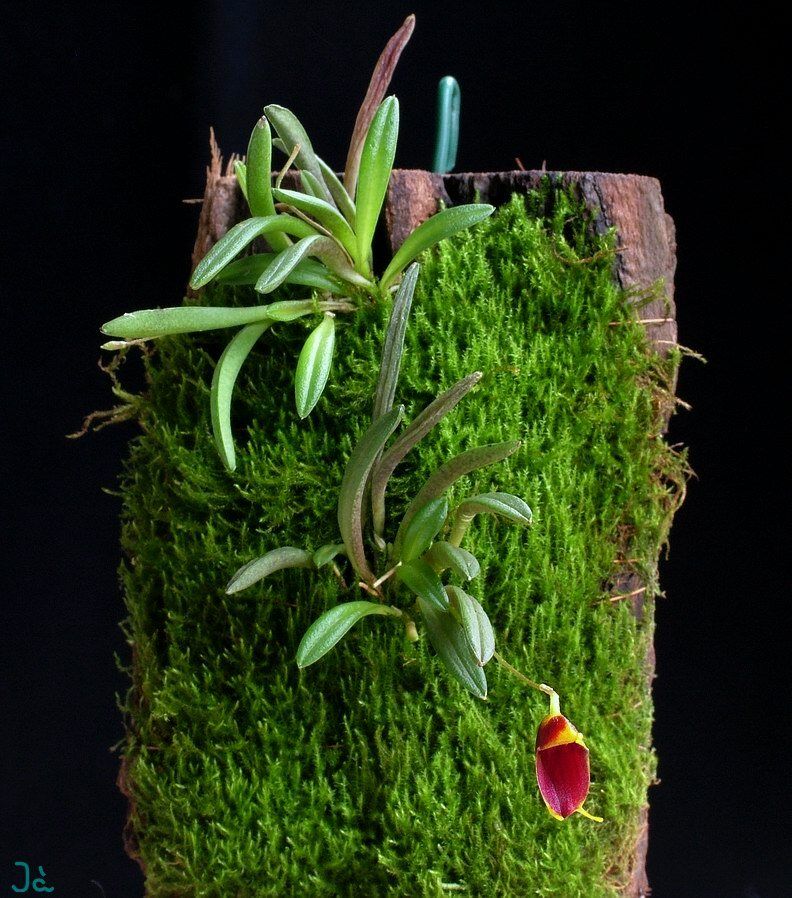 Found in Panama in cloudforests at elevations of 650 to 1000 meters as a mini-miniature sized, warm growing epiphyte with erect ramicauls enveloped basally by 2 to 3 thin, tubular sheaths carrying a single, apical, thickly coriaceous, narrowly elliptical, acute leaf that is narrowly cuneate below into the base that can bloom at any time of the year on an erect, slender, smooth, 1.8" [4.5 cm] long, racemose inflorescence witha succession of single flowers. succession of single flowers.