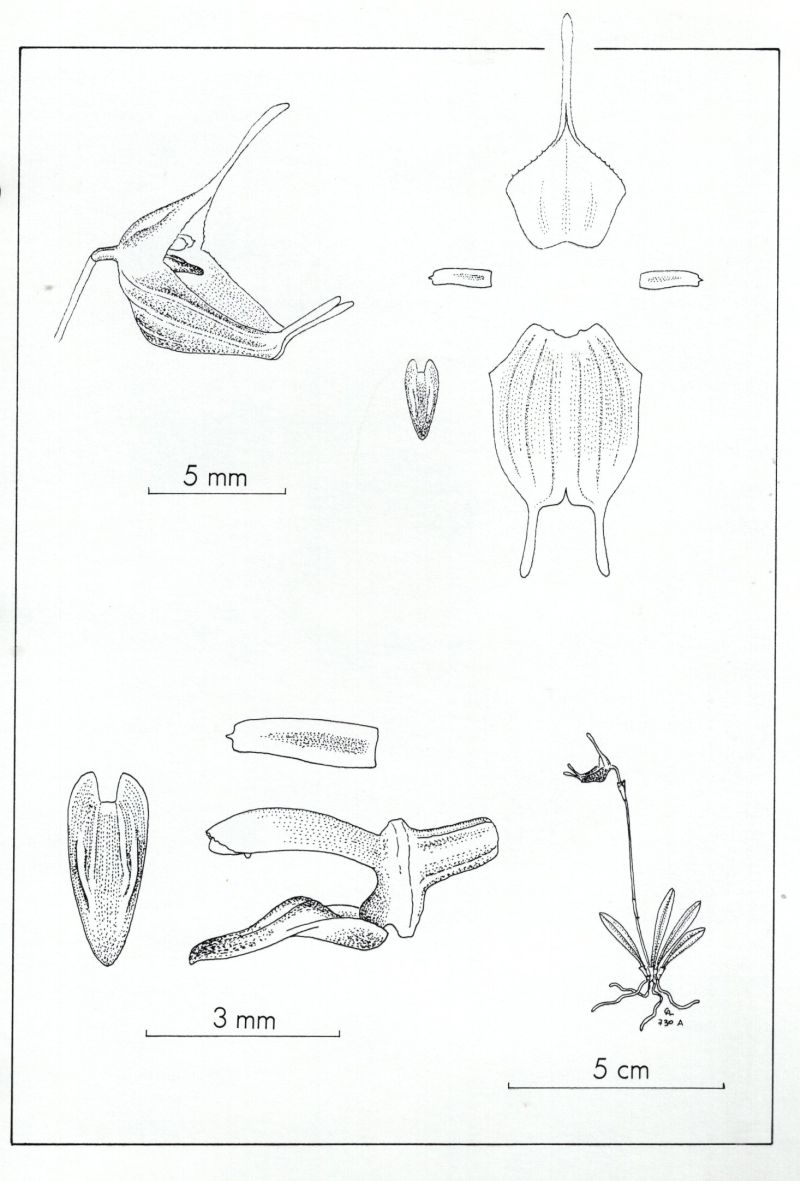 References W3 Tropicos, Kew Monocot list , IPNI ; Icones Pleurothallidinarum Vol VI Systematics of Pleurothallis subgen Ancipita, Scopula and Trisetella Luer 1989 drawing fide; AOS Bulletin Vol 72 No 8 2003 photo fide; Orchids Masdevallia with its segregates including Dracula Zelenko 2014 photo fide;